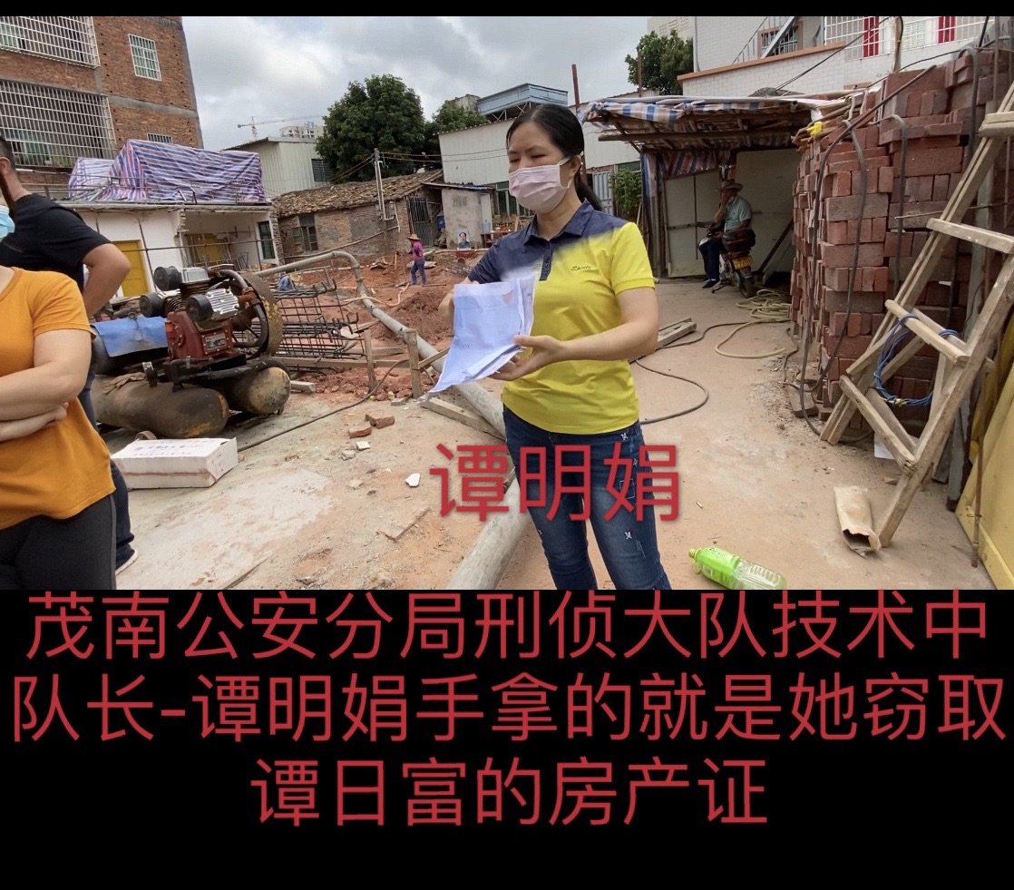 举报人:谭日富,男,67岁,汉族,茂南区新坡镇官渡上吉水村村民。 被申诉人:谭某某,女,汉族,茂名市茂南公安分局某中队长。 尊敬的公安局领导: 您好!以下是举报谭某某利用职权之便,欺压邻居的各种恶行手段。 一、滥用职权,以权谋私。 本人谭日富因自居楼房实属危房,现已报批拆旧建新,经相关部门合法审批,已领取《建设用地规划许可证》《建设用地批准书》《建设工程规划许可证》。正当我准备建房时,谭某某却利用自已的职业技术上的便利,通过政府网制造事端,以土地纠纷为由,捏造事实,诬告我违建,蒙蔽政府职能部门,阻止我建房,以达到侵占我土地和老祖屋。2019年12月24日,经过四级五个部门(村小组、村委会、镇村建办、镇国土所及区城管局)负责人前来现场处理,当时作出明确处理意见,即时划分清楚彼此房屋土地界线,证实老祖屋和我所居住的土地属于我所有。当时谭某某自知没能达到非法占有的目的,十分愤怒,立即电话摇控命令她父亲拒绝在土地房屋划分界线的协议上签字。甚至,谭某某还扬言决不放过我,就算告到中南海也不让我建屋。她玩忽职守,公务时间不上班,不办公,利用职务和社会人脉关系,到国土部门、城管局大打政府职能部门关系牌,向各级部门不断施压,致使各级职能部门不断到现场察看,导致我的正常合法生活被干扰。从2019年12月起就没有消停过,反反复复无理取闹,一会诬告我违章建筑,一会诬告证件未齐全就施工。甚至地基还没挖,就告我建房超平方数。但经各级职能部门来到现场调查,核实,不但我没有违章建筑,而且报建证件全部齐全。我未曾施工,又何来做超平方数,搞到前来调查人员怨声载道,拂袖而去,像猴子一样被人玩耍。 二、胆大妄为,指使家人拉垃圾、砖块堵塞我家门口的黑恶势力行为。 经各级部门的不懈调解处理,谭某某却不正视现实,还不断带领家人无理取闹,耍黑社会行为阻止我施工。2020年4月25日拉来一货车砖块,堵塞在我家门前,导致我不能出入,当时我已报警处理。2020年4月29日谭某某又指挥其弟弟和弟媳再次拉来一大货车垃圾正要倒在我家门口,刚好被我看见,我质问他们为什么要这样做,她弟媳非常嚣张地说:“公众路我想怎样倒就怎么倒,你管不了。”当时我又报警和请村干部,村委会干部来处理,经干警对他们的批评和警告后,律令他们拉走垃圾,否则后果自负,他们无可奈何地把垃圾拉走。而此恶行,世间少有,只有谭明娟才做得出来,她一计不成又生一计。2020年5月7日是我开始建房施工的第一天,谭某某带领家人来我家大吵大闹,并爬上施工车辆阻拦我施工。在争吵中,谭某某十足一个村中泼妇,她对我恶言相向、粗俗之词不堪入耳,全无邻理道德,几乎发生到打斗的场面,谭某某身为公安公务人员,到村里穿着警服却像披着羊皮的狼,干着巧取豪夺的勾当。早在1995年8月,谭明娟无视村民合法财产所有权,教唆家人与邻居争斗不休,纵容其家人利用家族势力横行乡里。谭某某找来黑社会流氓来村强推倒村民谭亚庆的围墙,还打伤其的老母亲。事后谭某娟还亲自带领指挥茂南区山阁派出所干警姚**恐吓乡邻,其恶行令人发指。 三、鼓吹迷信,无中生有。 谭某某在三番五次阻止我建设不成,又出一毒计,鼓吹迷信。她到各级职能部门,告我家一口每天在吃用老水井,伤害到她家的风水,疑神疑鬼,说她一家人一回到家中就见到鬼,有阴影出现,并请来风水先生驱邪,并要我立即填井并把土地让给她。谭某某如此滑稽可笑的行为,讲鬼讲怪,目的是想要我的土地与房屋。作为一个国家公安人员是多么的荒唐与愚昧,又作为一个共产党员、公务员,散播封建迷信,严重影响了一个国家党员、公务员的形象和声誉。除此之外,还有更极端的手段,她一家人经常站在她家的楼顶上,往我家饮用水井投掷杂物,我一家人十分害怕,不知什么时候水井会出问题,喝到有毒的井水,有谁来保证我一家人的生命财产安全。 四、以权谋私,藐视法律,知法犯法,偷窃我的个人资料。 谭某某以权谋私,知法犯法,利用公安网和她的刑侦技术手段,以工作便利到其他部门,以办案为由去盗取我的个人报批审核的所有 资料,侵犯我个人权益,使我的权益受到损害,精神受到极大伤害,无法正常工作和生活。 上述种种恶行,足以证明谭某某打着公安干警的旗号,欺下瞒上做出如此龌龊的行径,如此诸徒,脱离了党纪法纪的约束,又怎样能称得上人民警察的宗旨呢?她不是在为人民服务,而是在祸害人民,欺压百姓,是人民警察是共产党员的耻辱。在此,我恳请公安局领导对我的申诉给予秉公处理,肃清潜伏在公安队伍的害群之马。 此致 谢谢! 2020年5月28日