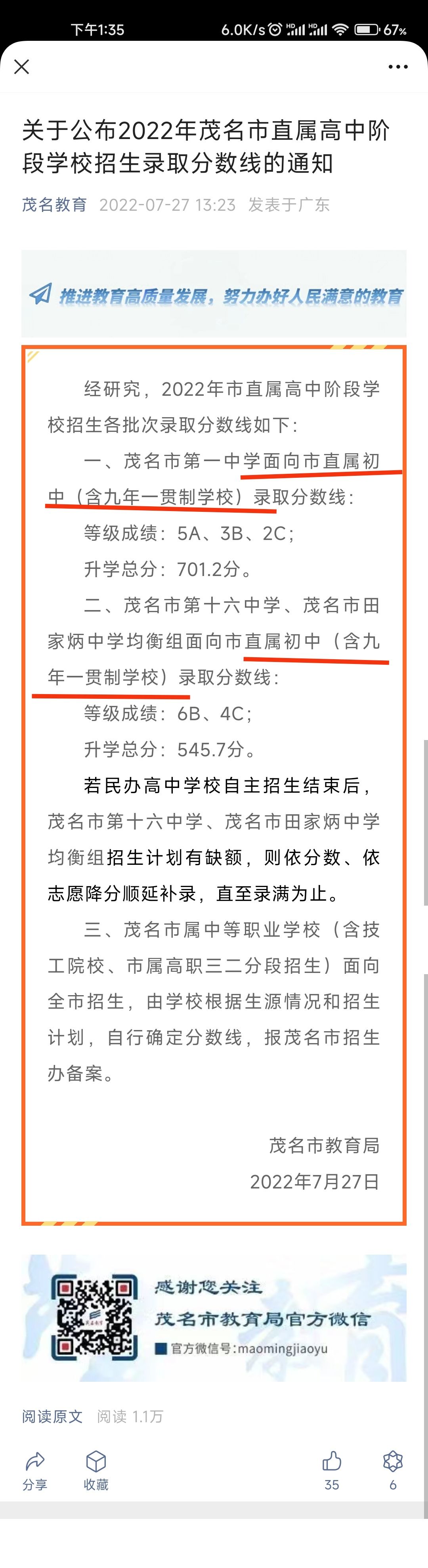 南海之子 发表于 2022-7-27 14:53 好像今年录取分数线非常简单,没说户口问题,只说是市直属学校,之前说就读开发区只要是市区户口就同等待遇 ...