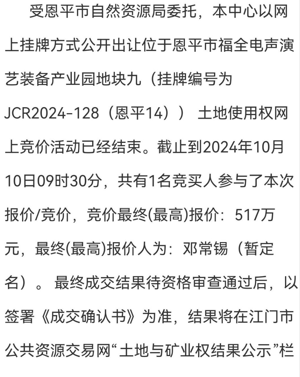 北美难民 发表于 2024-12-5 13:12 小恩平几斤几两心里没数吗?敢把你小恩平拍卖30多亩工业用地的详细数据拿出来吗?多少钱一亩地,每亩投资 ...