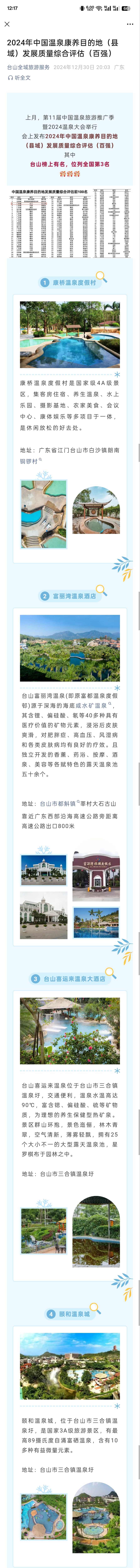 成哥 发表于 2024-12-31 12:24 原文是出自这里吧,台山目前在营运的温泉酒店4家,五星级1家,四星级2家,三星级1家。另外,颐和温泉城除了 ...