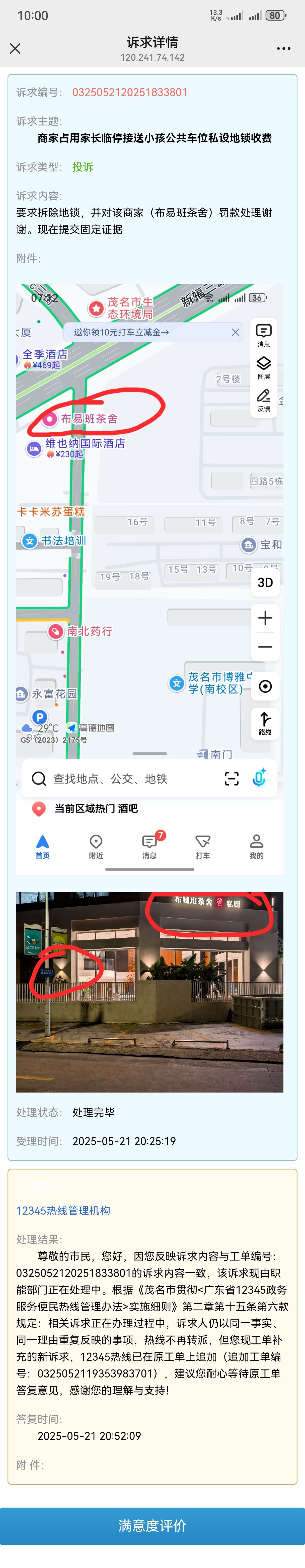 就是这个商家-布*班茶舍在博雅中学的家长临停公共车位私设地锁收费,生意做不下去赶紧倒闭吧,神经病一样。必须12345投诉一波。