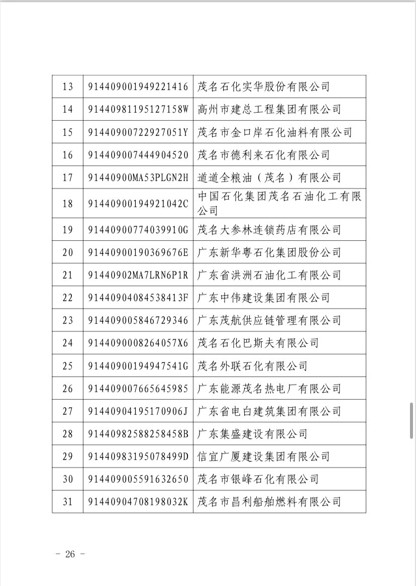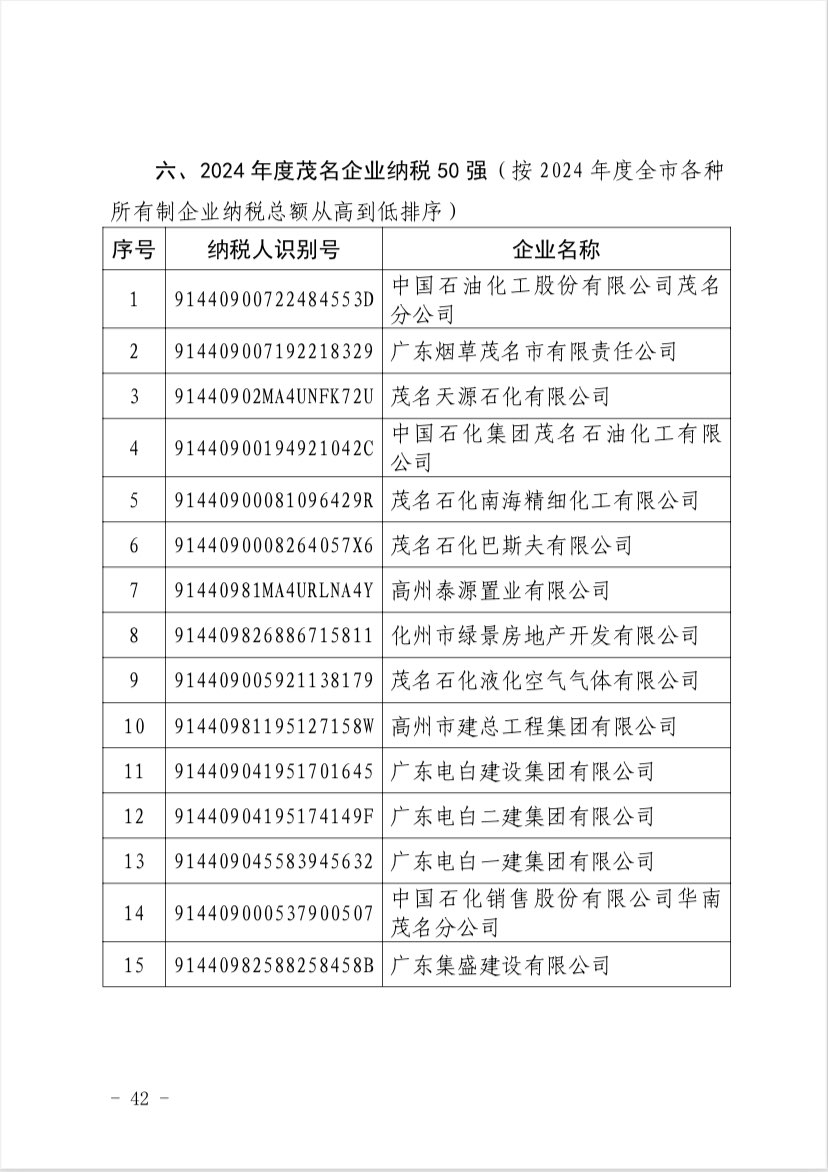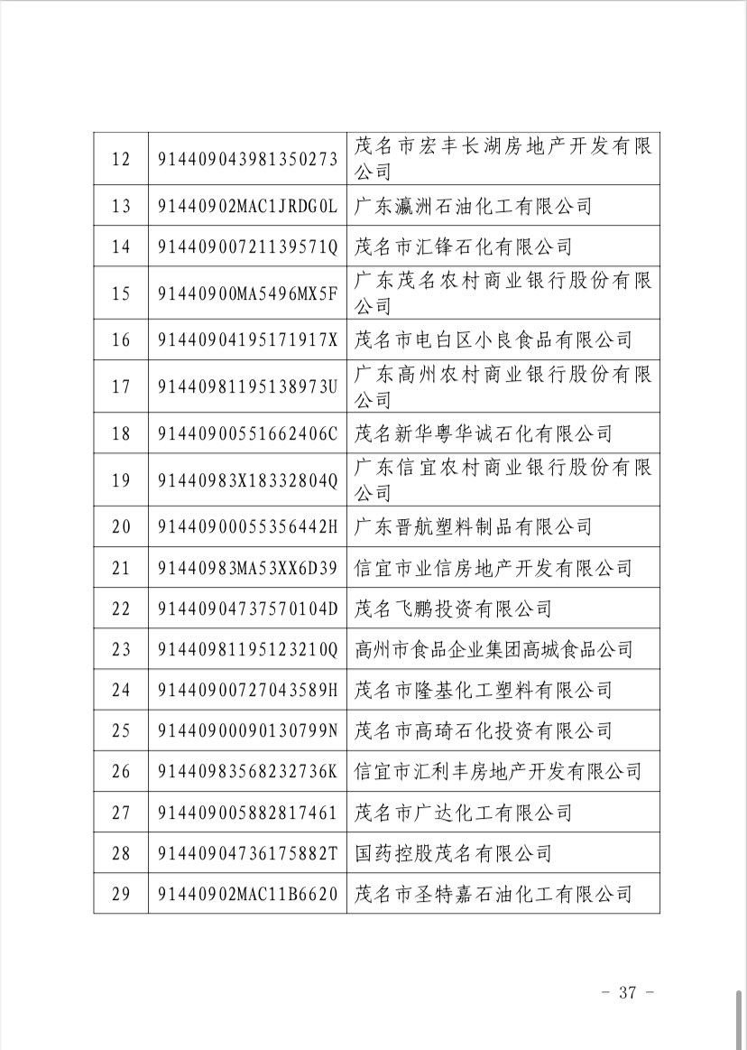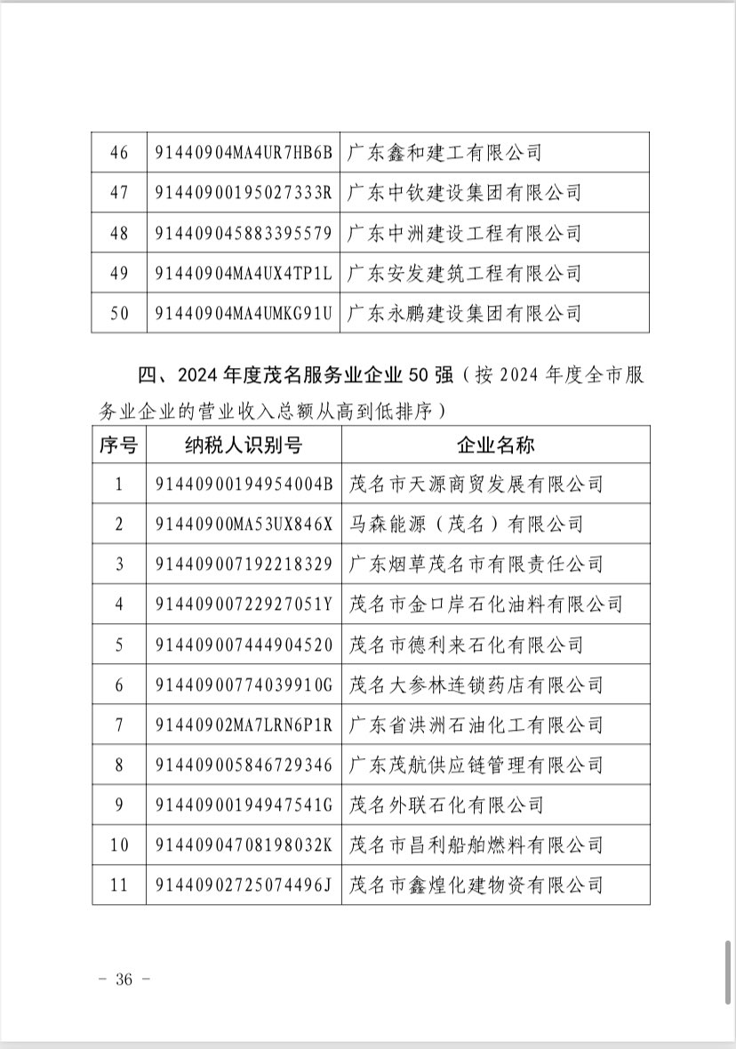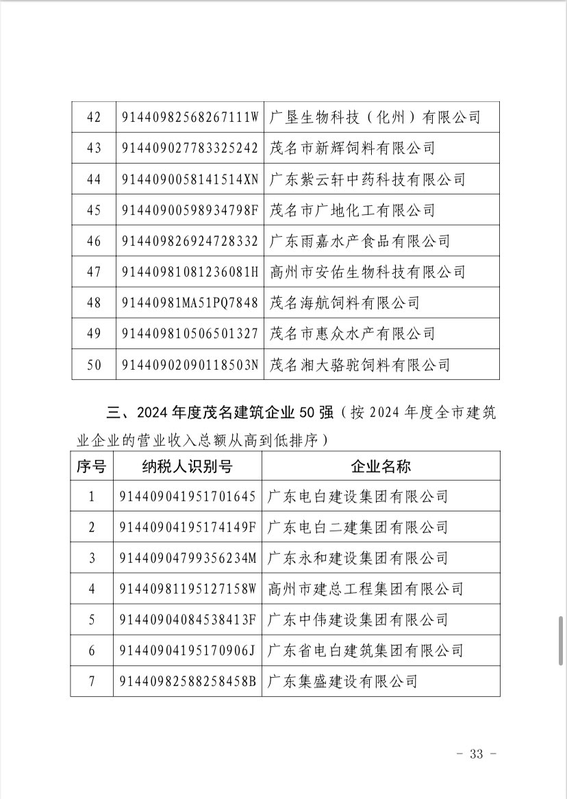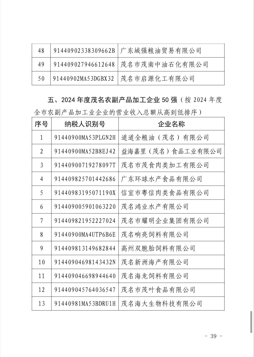 关于 2024 年度茂名企业100强、企业 50强名单的第二次公 ...
