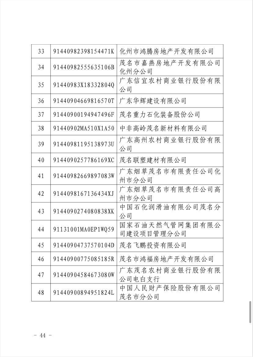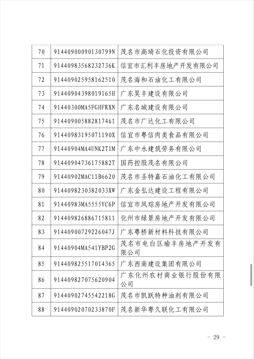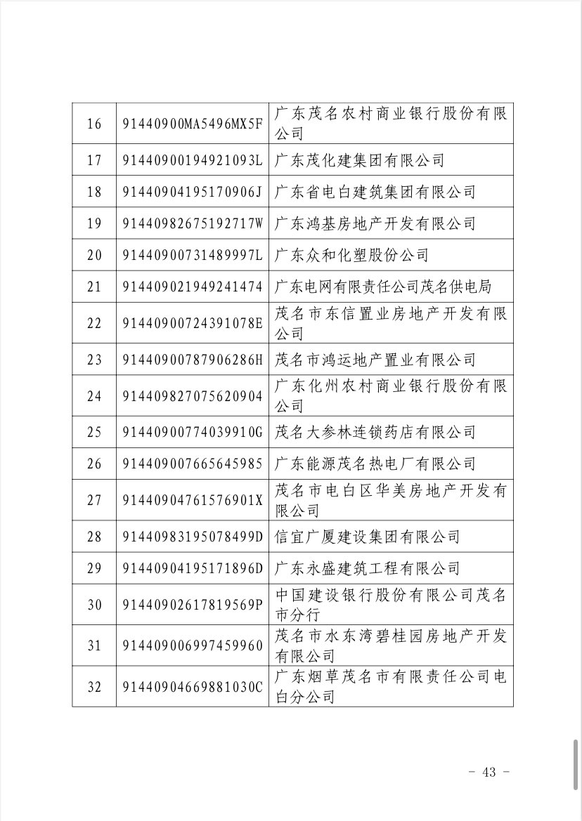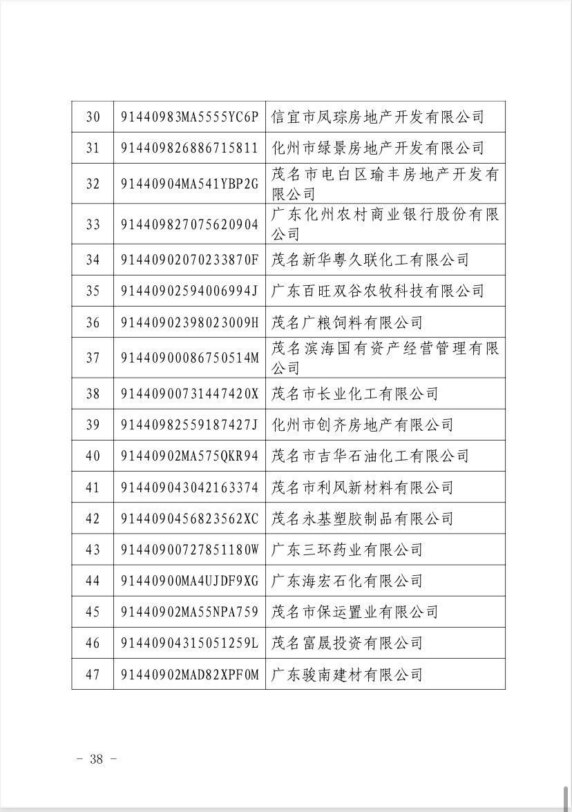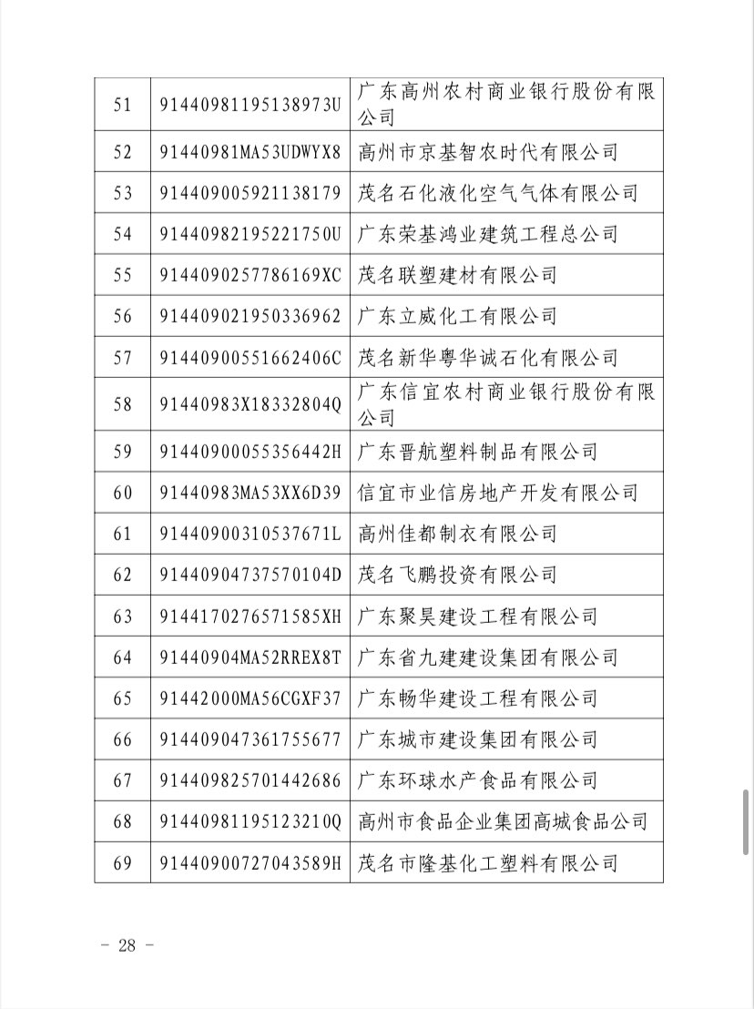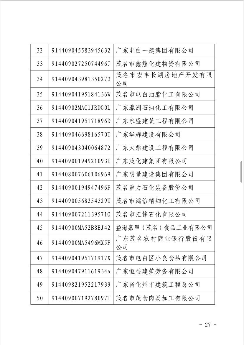关于 2024 年度茂名企业100强、企业 50强名单的第二次公 ...