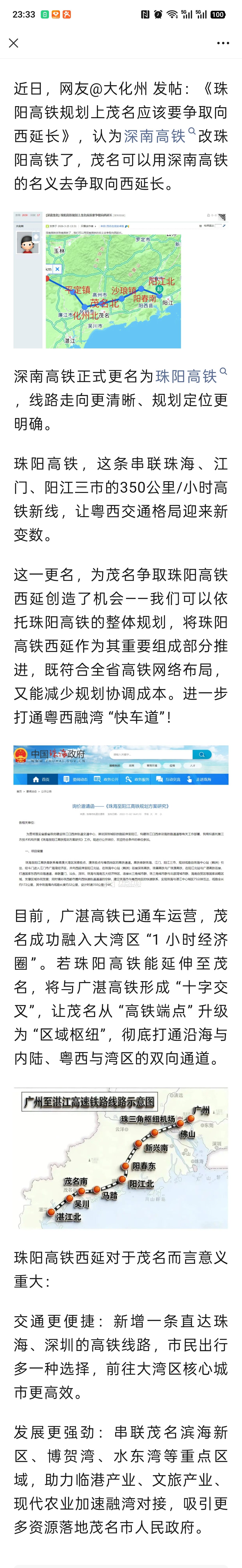 珠阳高铁规划上茂名应该要争取向西延长