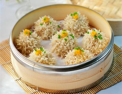 请点击此处输入图片描述 主料:瘦猪肉、籼糯米、肥猪肉肥、荸荠 辅料:油、盐、姜、味精、小葱、胡椒粉 1.将猪瘦肉剁成茸;猪肥肉切成黄豆大小的颗粒;荸荠削皮,切成黄豆大的丁; 2.糯米淘洗干净,用温水浸泡2小时后捞出沥干;猪肉茸入钵加味精、精盐、葱花、姜末、黄酒、胡椒粉,分三次加入300毫升清水,搅拌上劲,再加入肥肉丁和荸荠丁一道拌匀; 3.再挤成直径1.6厘米大的肉圆;再逐个地将粘上糯米的肉圆捡放在蒸笼内排放整齐; 4.在旺火沸水锅蒸15分钟,取出装盘即成; 5.装盘,搞定。 |