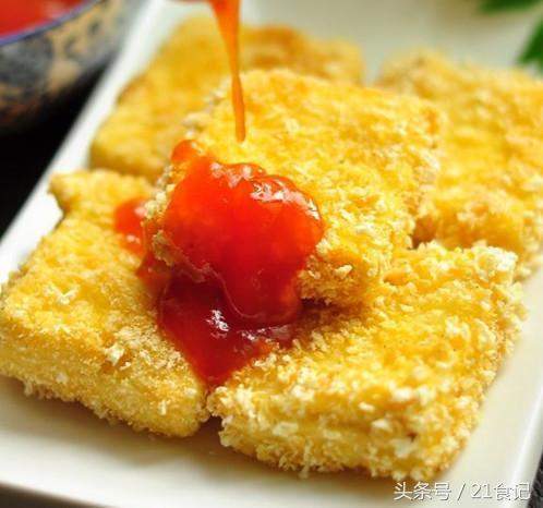 水豆腐半块、油适量、盐适量、番茄沙司2大勺、糖1勺、九度米醋1勺、水淀粉少许、面包糠适量、面粉适量、鸡蛋1个