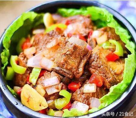 材料:猪排500克、青红椒各一个、洋葱半个、食盐1茶匙、鸡精1茶匙、蒜适量、料酒1勺、生抽1勺、老抽1勺、剁椒1勺、白胡椒1茶匙、清水适量、油适量。