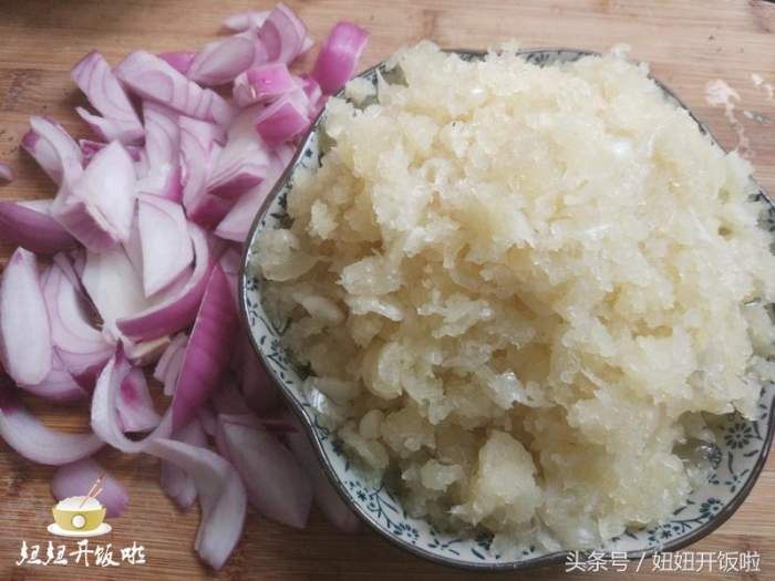 1/11 蒜蓉酱是很多烧烤品种都要用的。蒜蓉花甲,蒜蓉茄子,蒜蓉基围虾都是妞妞的最爱,每次做菜的时候再去做蒜泥实在麻烦,这个蒜蓉酱,不管是调凉菜,或是炒菜的时候,都可以放进去一小勺,做出来的菜更香更美味,比直接放蒜粒可是会强百倍呢。2/11 去菜市的时候发现蒜价格很便宜,十块钱三斤,立马就买了一些回来。加上洋葱和食用油海鲜酱的成本,这样一大瓶的成本不到10元钱。材料百分百纯天然,不含任何添加剂和色素,自己做干净卫生。3/11 这是剥好皮的蒜,选用好的大蒜,不要用发芽,变色的蒜,剥蒜实在是个体力活,建议大家边看电视剧边剥。4/11 可以用搅拌机打碎,也可以跟妞妞一样用捣蒜器。5/11 食材准备:洋葱一个切成块,蒜捣成蒜蓉(3斤蒜)6/11 锅内热油,倒入切好的洋葱块。