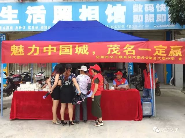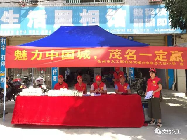 “魅力中国城,投票投茂名”。为配合茂名市“魅力中国城”竞演,化州市义工联合会文楼分会携手文楼中学、文楼卫生院,于8月8日、9日组织20余义工5台宣传车,深入粤桂两省(区)三市(县)周边乡镇,开展了“助力茂名”投票宣传活动。活动得到兄弟省(区)支持,效果良好。