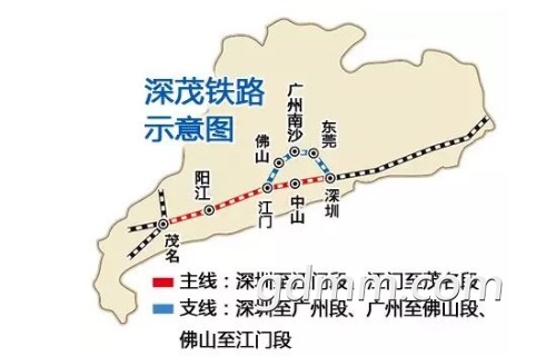 深茂线和广湛之间应该有40-50公里的间隔,太近了,就不适合幅射,只能算是重复建设,浪费资源