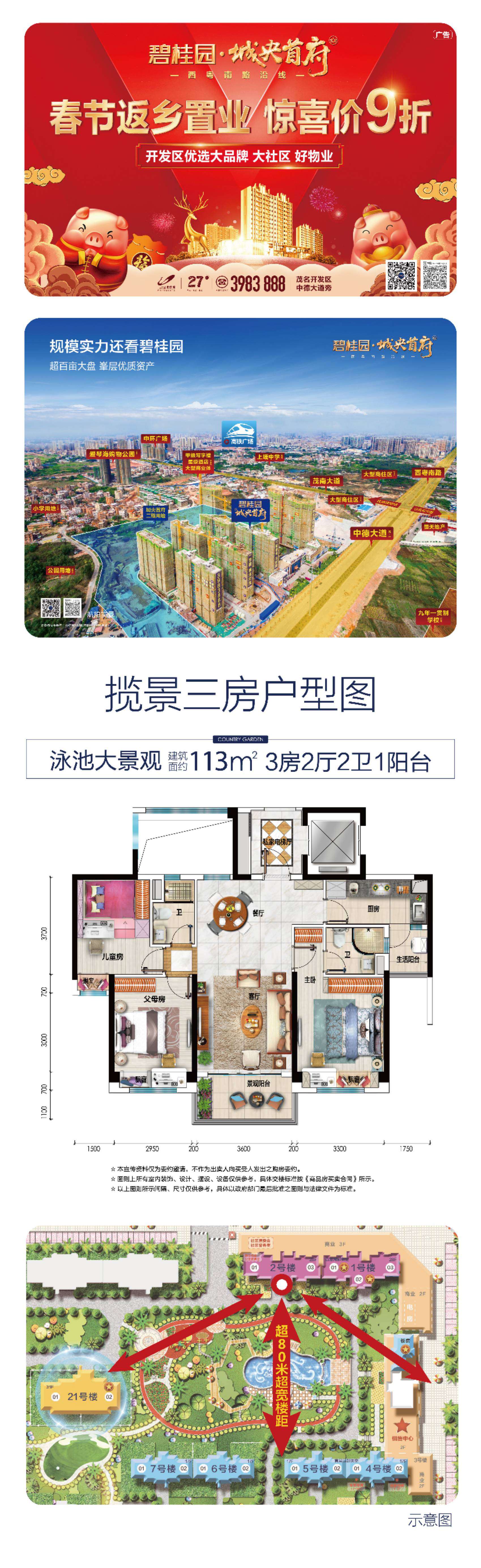 建面约117m揽景三房 泳池大景观