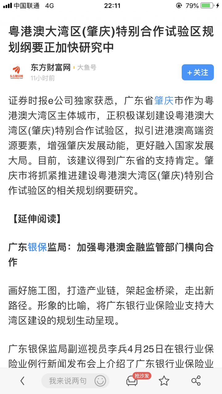 可惜大湾区规划中,肇庆完全打酱油,跟港澳合作完全只字没有