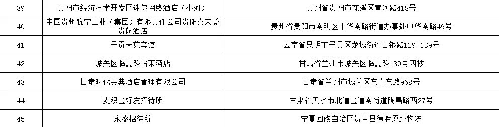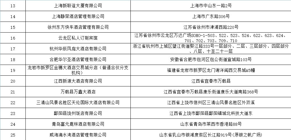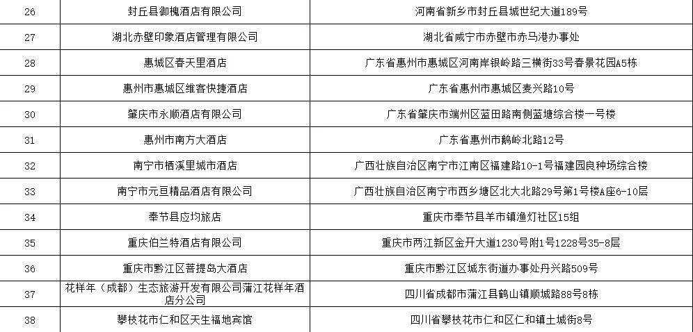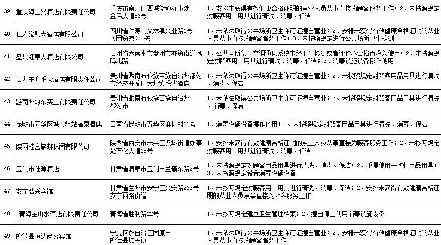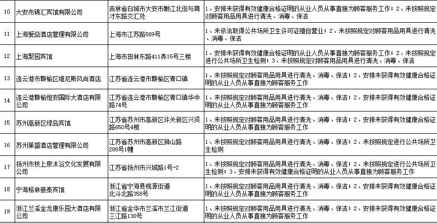 专项整治期间查处的有多项违法情形的住宿场所经营单位名单