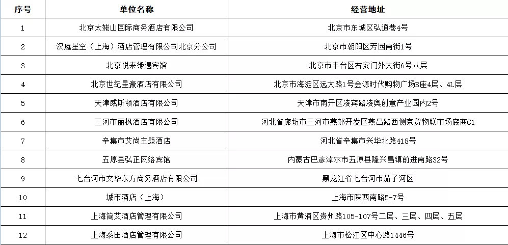 国家卫健委公布卫生不合格酒店名单:格林豪泰、汉庭上榜
