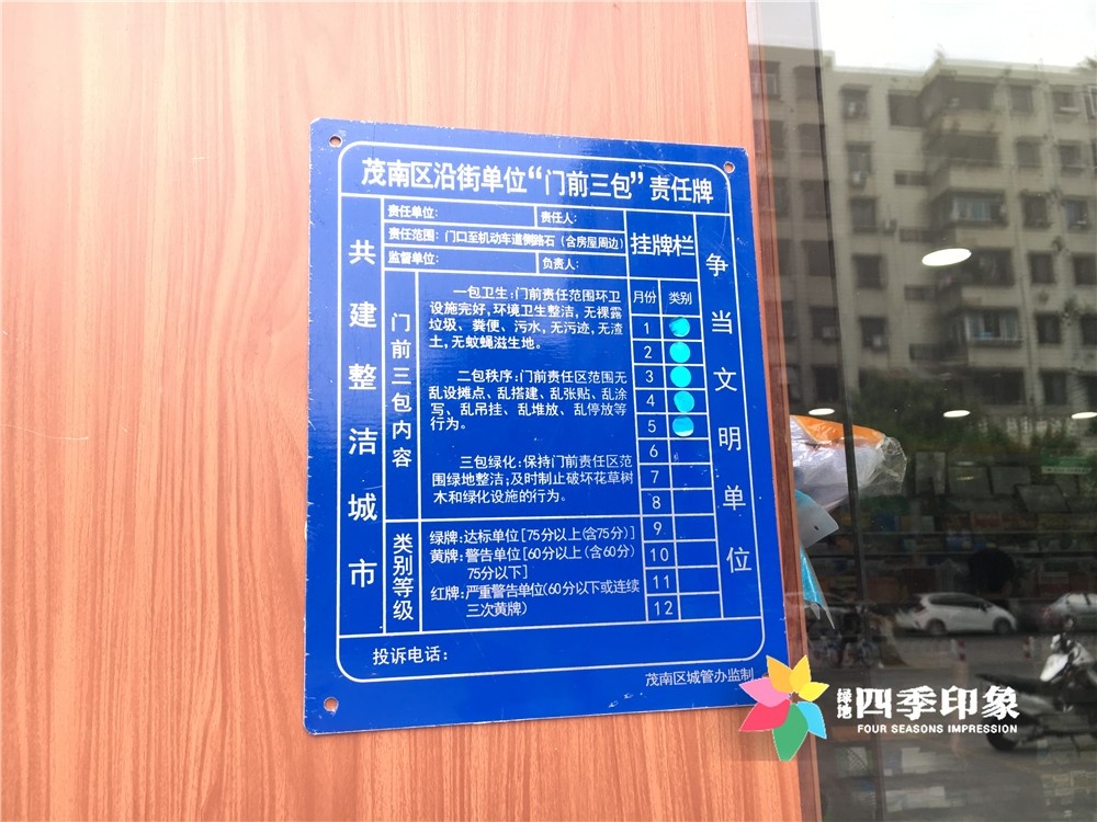 商铺门前挂有“三包”责任牌