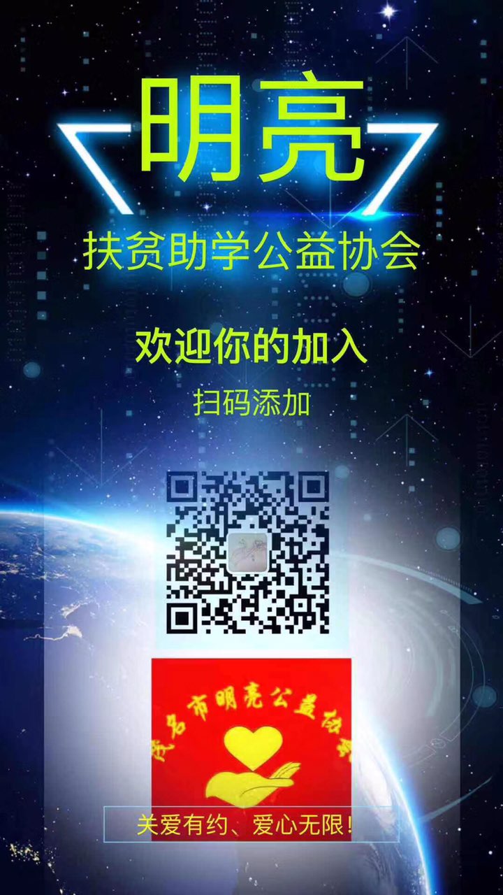 没有太晚的开始,不如就从现在开始,总有一天,那个一点一点可见的未来,会在你心里,也在你的脚下慢慢清透。“明亮”从不亏待每一个努力向上的人,“明亮”是光明透亮的。欢迎更多的爱心人士和爱心商家的加入,扫码添加。