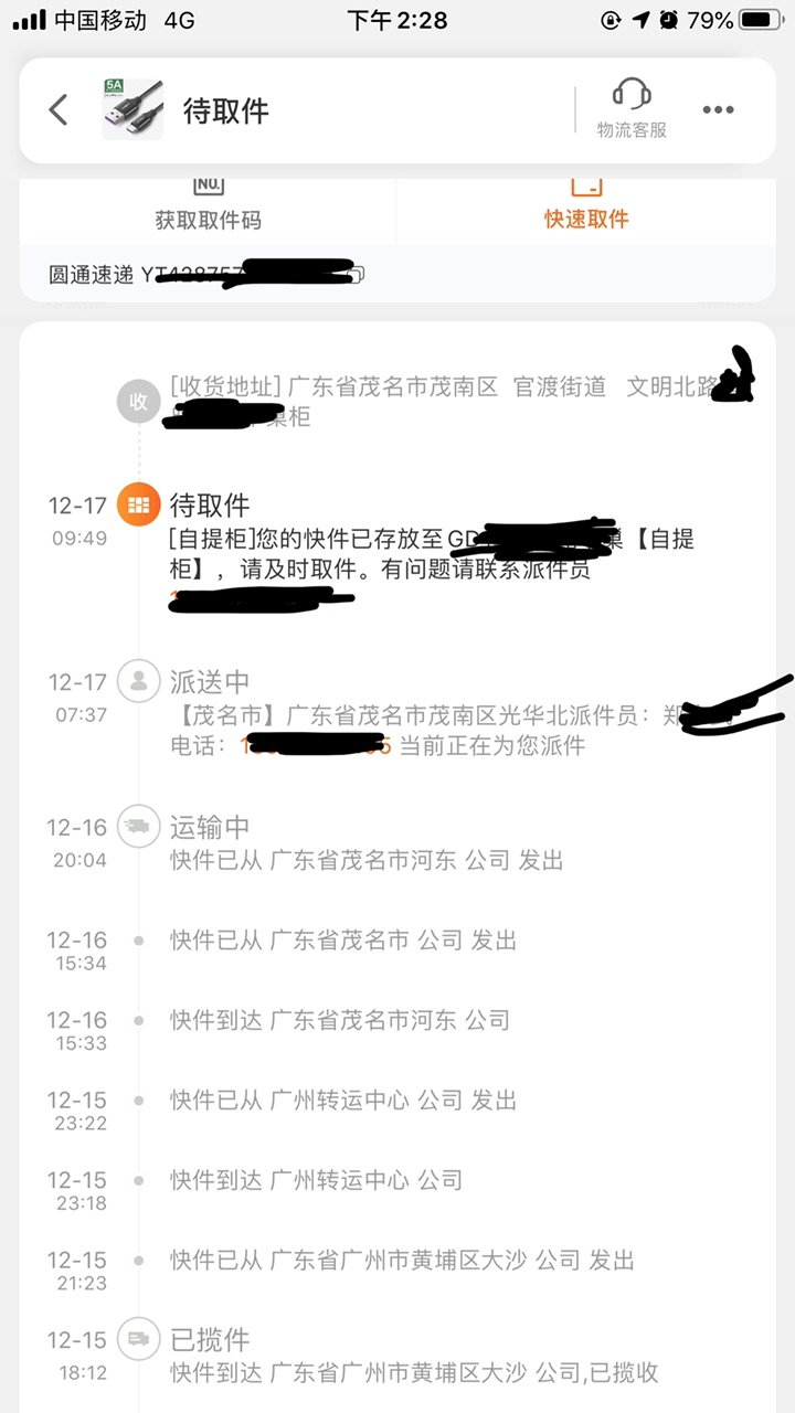 车德辉 发表于 2019-12-16 19:38 今天已经恢复送件了,刚刚就收到一件圆通快递,听说还积压五千几件快递。