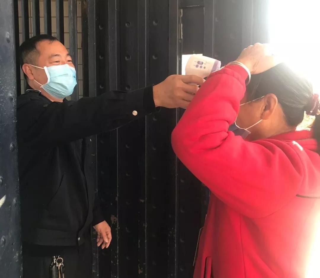 对进入办公区、监区的全体工作人员、外来人员,一律进行体温检测和佩戴口罩做好登记并由本人签名,坚决防止病毒进入监区。