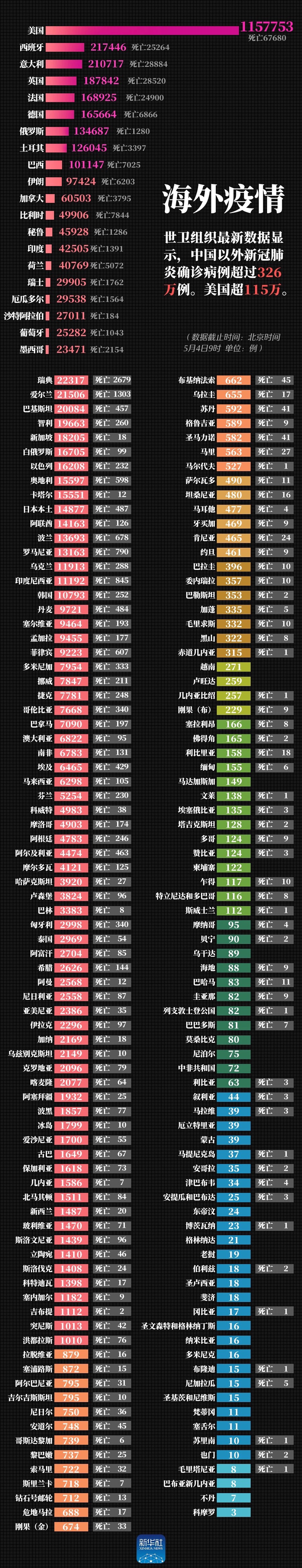 最新!美国超115万例,中国以外确诊病例超过326万例