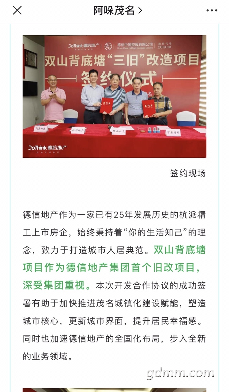 [深读茂名] 牛了!双山背底塘引进德信集团进行旧改!