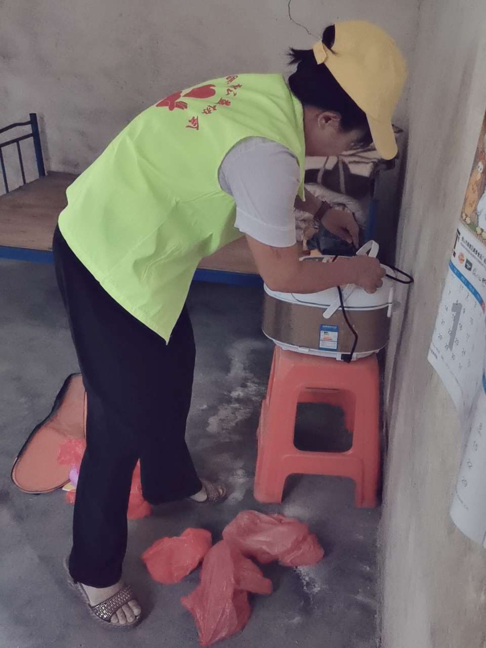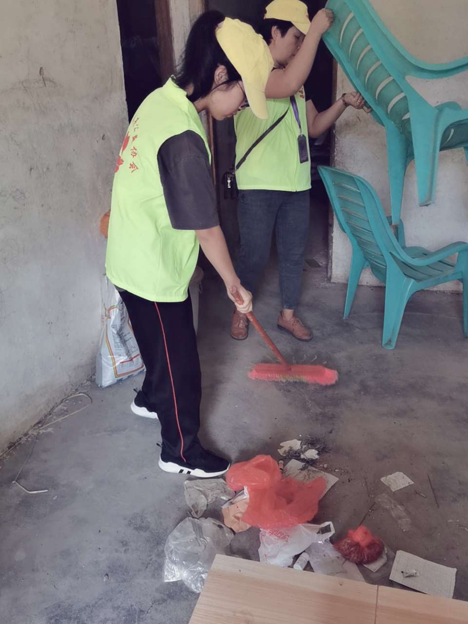 明亮的志愿者们在帮孤儿(学子)梁**打扫卫生