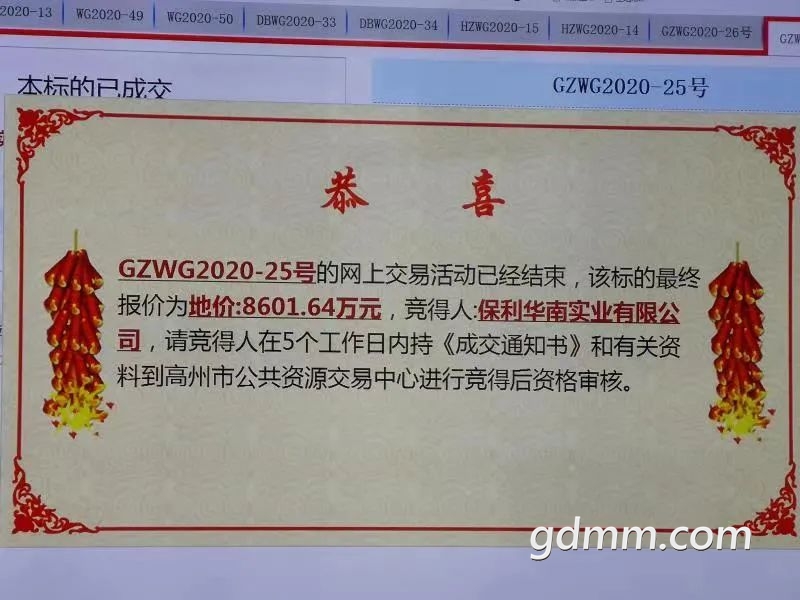 刚刚,2020年最后一场土拍完美收官!高州市城南片区茂岭路西侧三块体育馆相关地块全部被保利华南实业有限公 ...