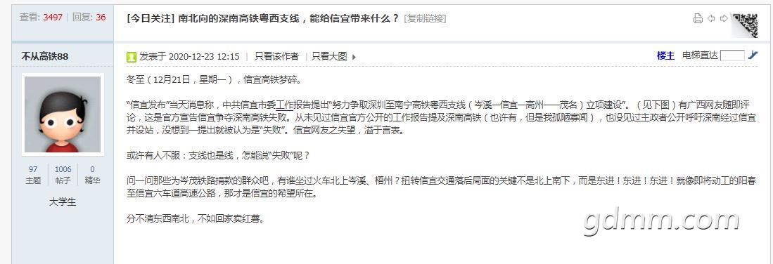 不从高铁88 发表于 2021-3-5 19:35 不少人认为,广西不愿意参与建设二湛茂阳支线。我却以为,有三个”不要低估“: 一、不要低估广西的意愿。 ...