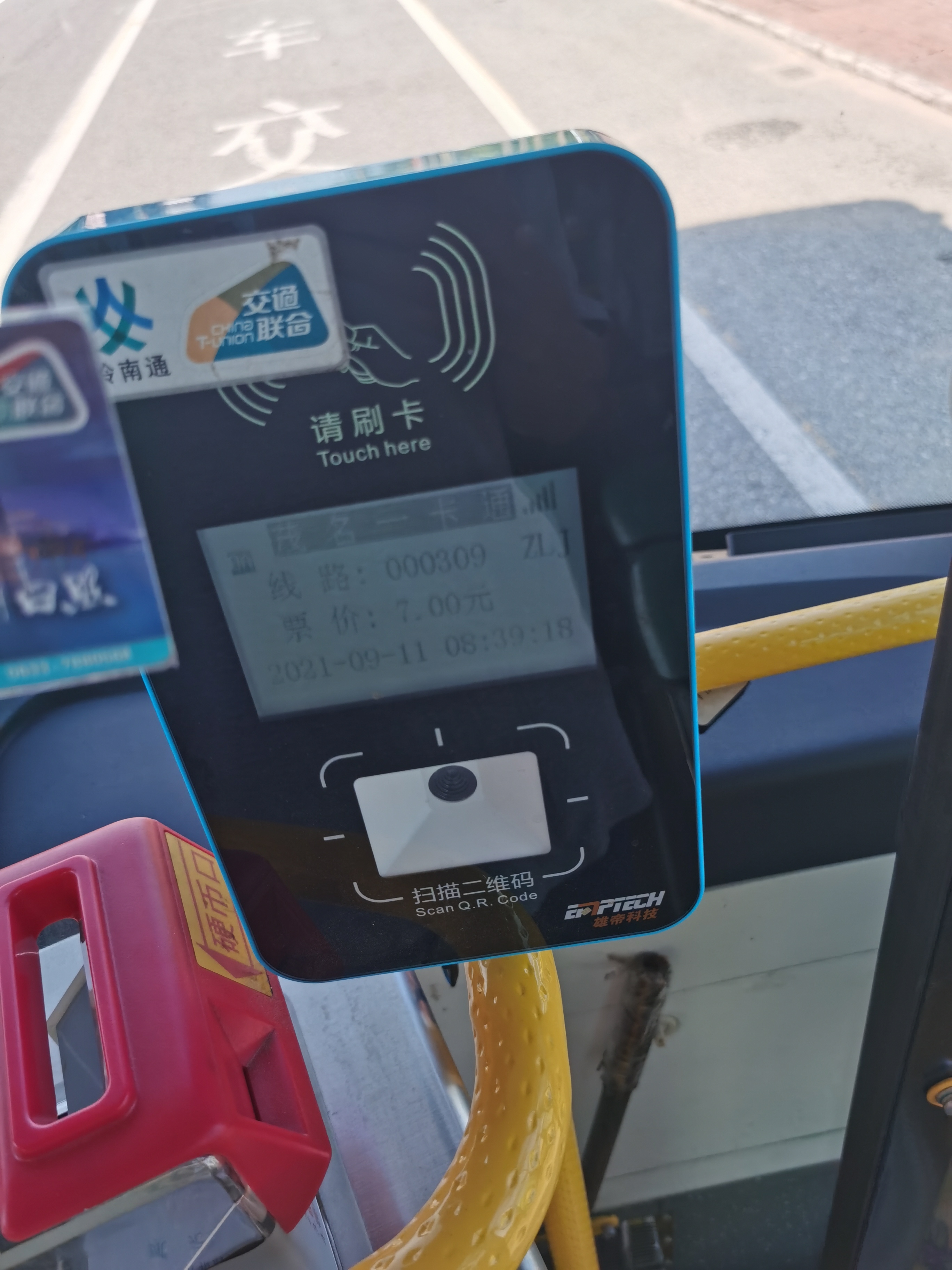 今早用日照莒县浮来春公交公司的卡,刷茂名公交309路,成功,8折!