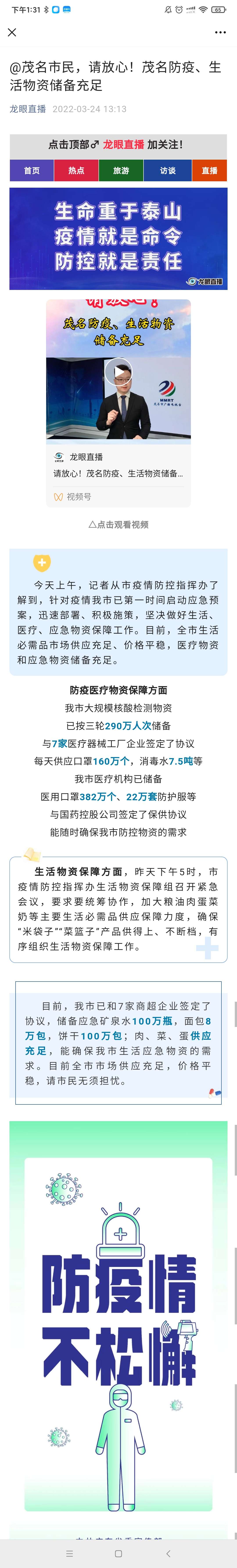 能随时确保我市防控物资的需求