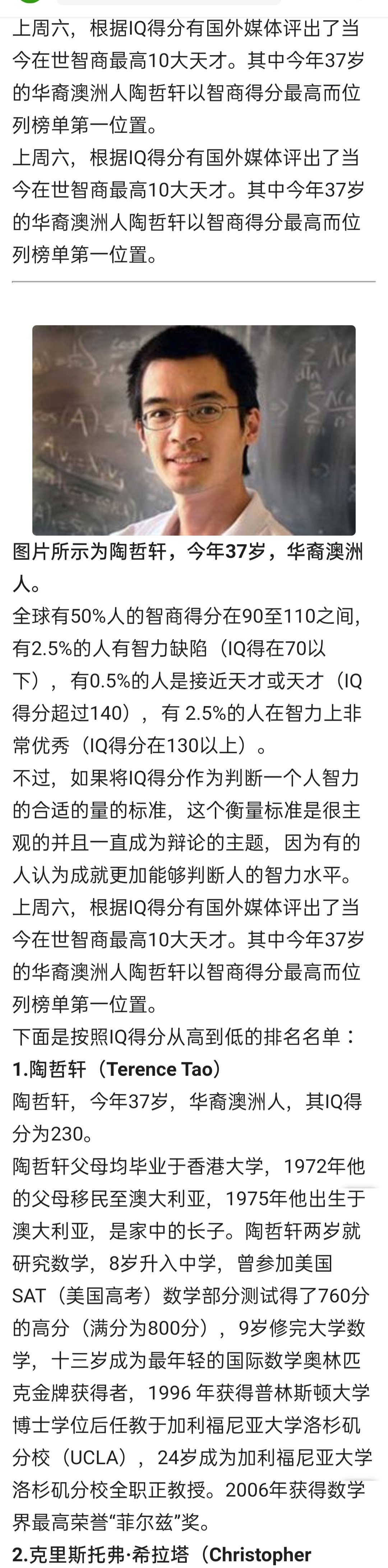 陶哲轩,祖籍化州,当今在世智商天才,世界榜单排第一/小川0蛋