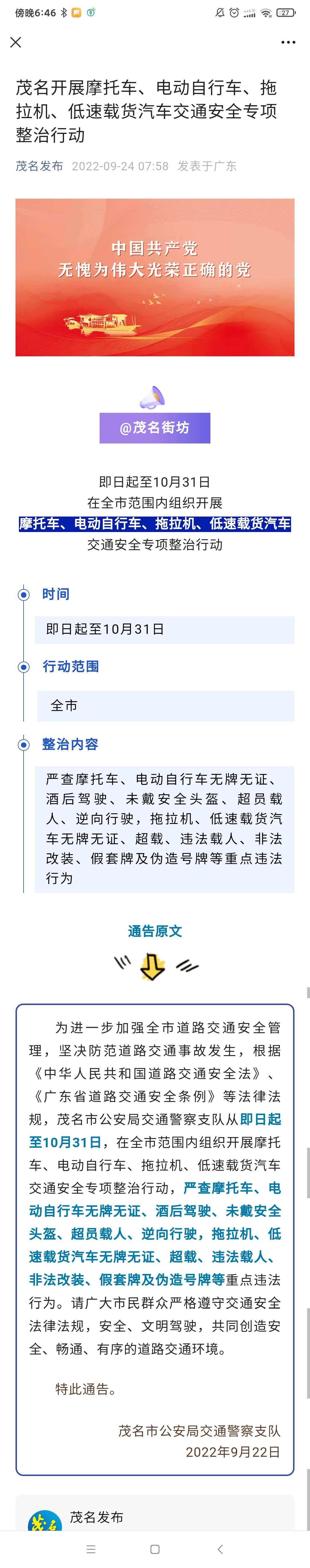 即日起至10月31日!茂名严查摩托车、电动自行车无牌无证、酒后驾驶…