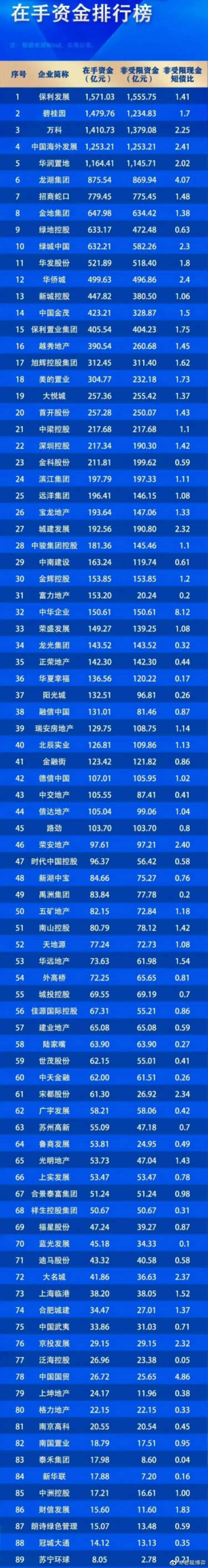 [今日关注] 地产商在手资金排行榜!保利发展排名第一