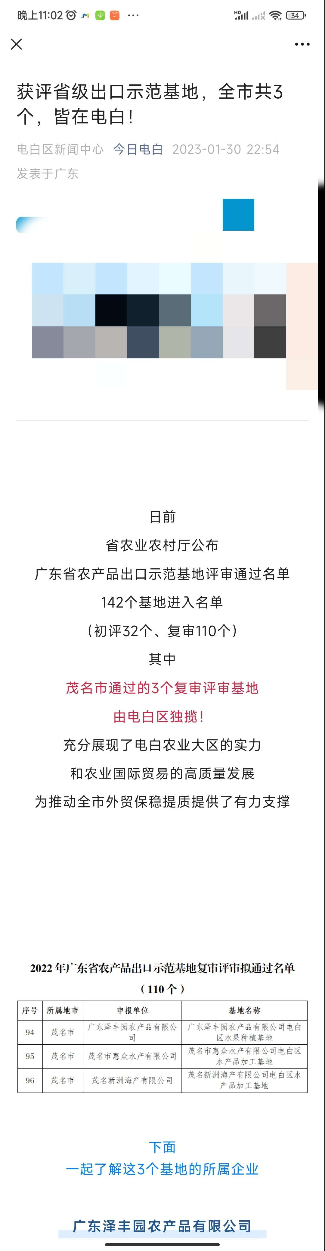 [今日关注] 赞!获评省级出口示范基地,全市共3个,皆在电白!