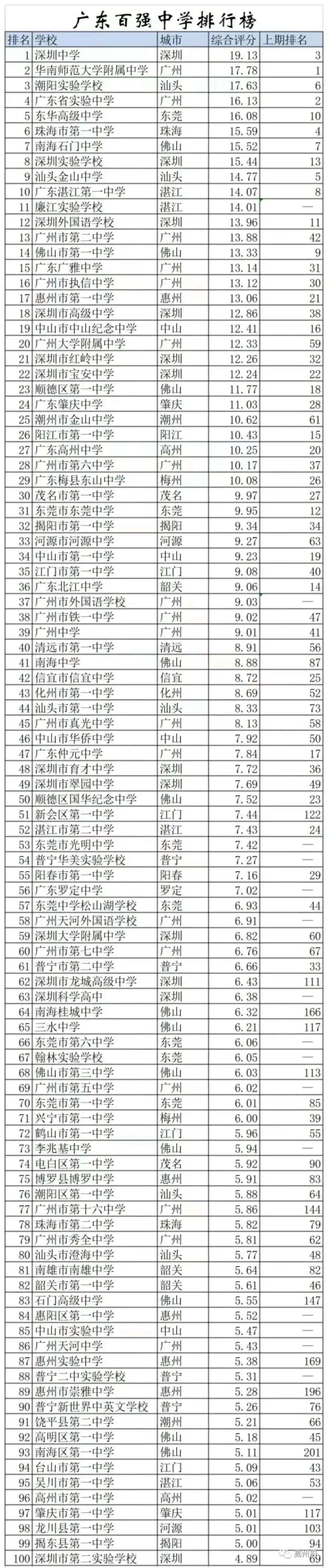 广高排名掉了 高州一中挤到96名了
