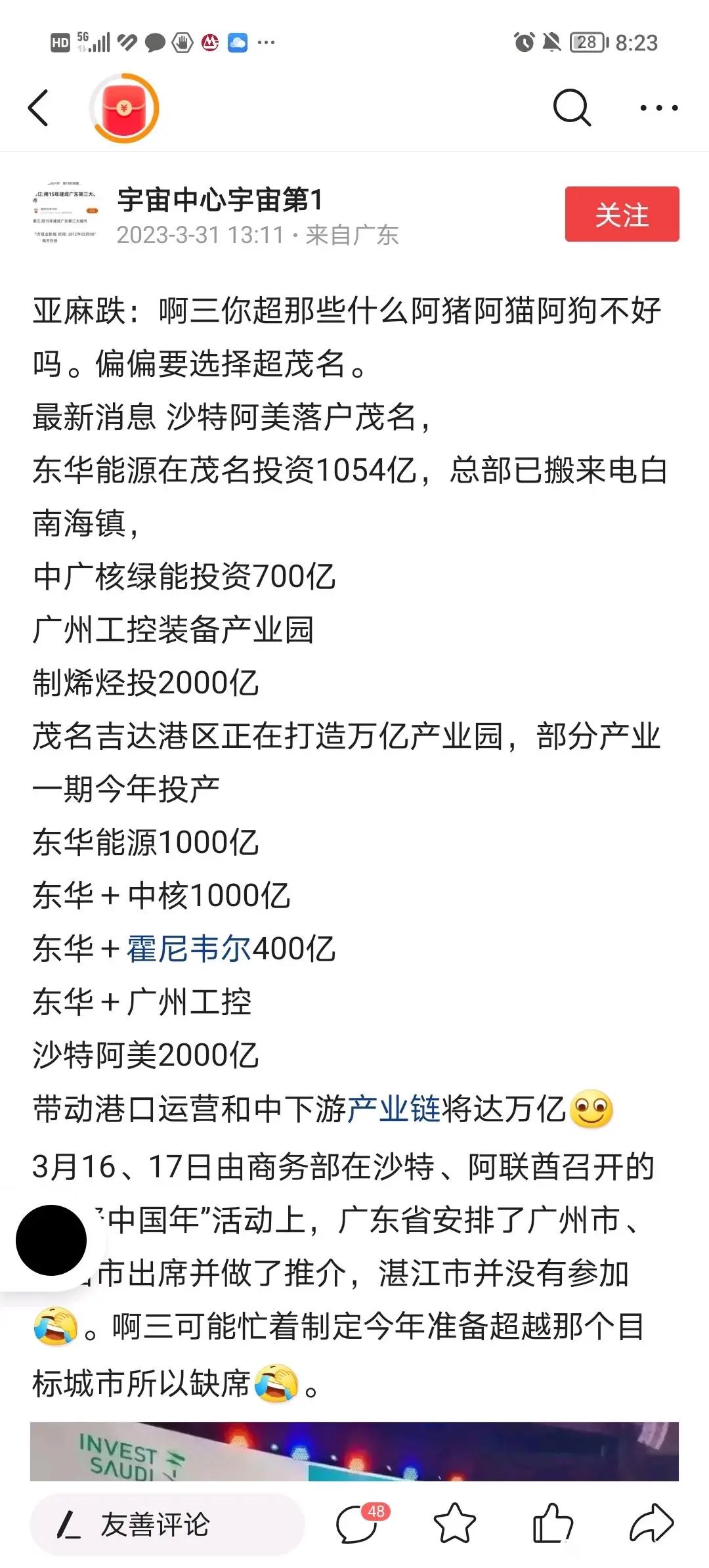dg123456 发表于 2023-3-31 22:50 把石化技改和华南钛谷搞好,是金子总会发亮,大力招商引资,总会引来金凤凰