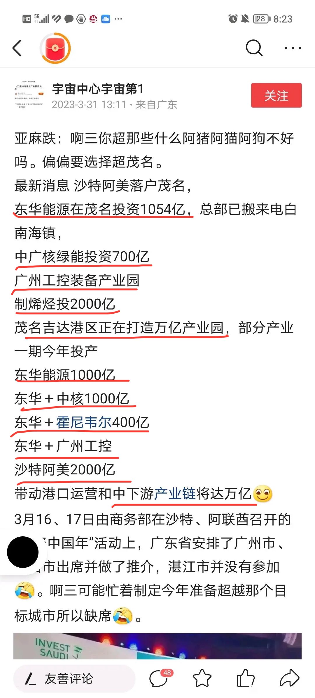 新洲九街 发表于 2023-4-5 12:03 识少少扮代表,400亿是东华自己投的,1000亿指的是由东华所引进的中下游产业总投资额