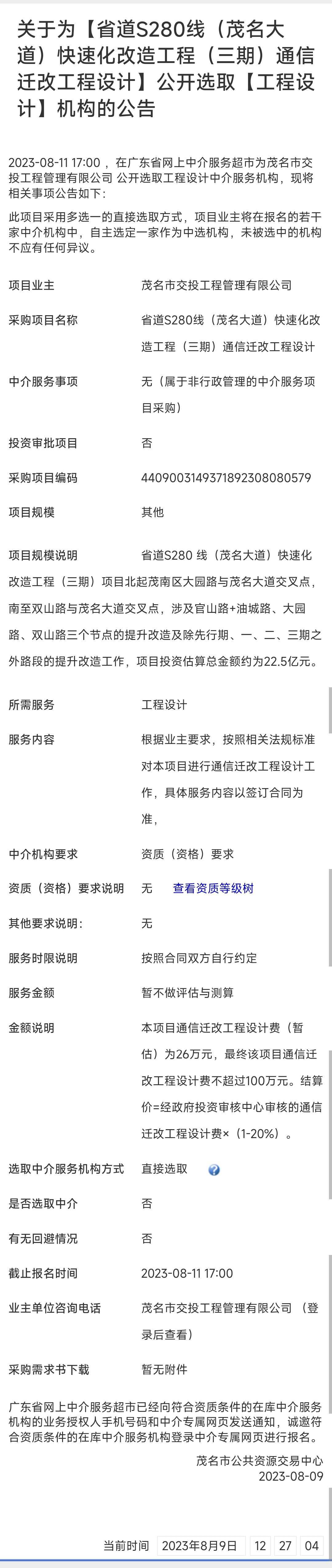 茂名大道快速化改造(市区段)又有新消息,通信迁改,电力迁改项目准备中
