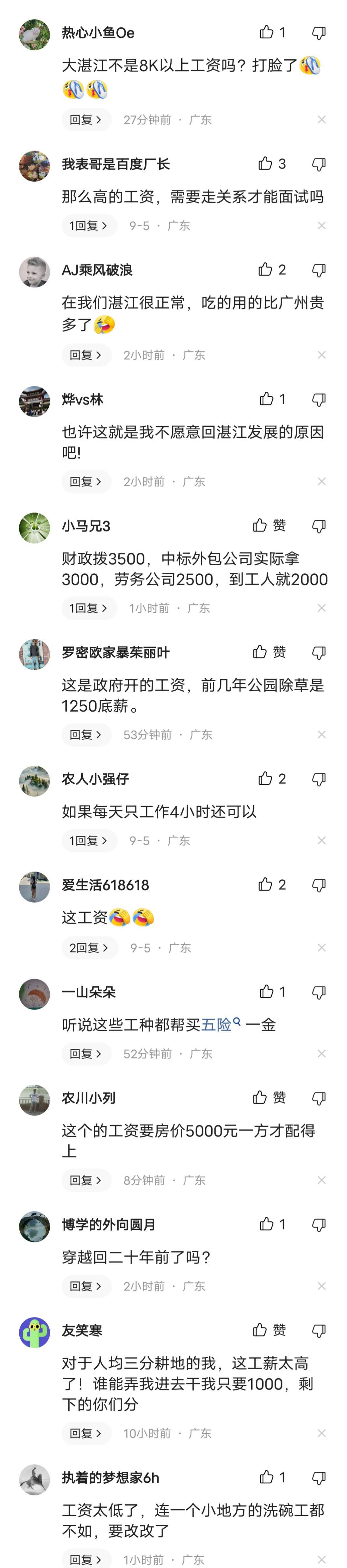 香油鸡 发表于 2023-9-6 11:51 憨仔,别为了黑而黑啊,我档口请的老乡茂名服务员也只1800元/月包食两餐而已啊,别以为茂名的基层工资有 ...
