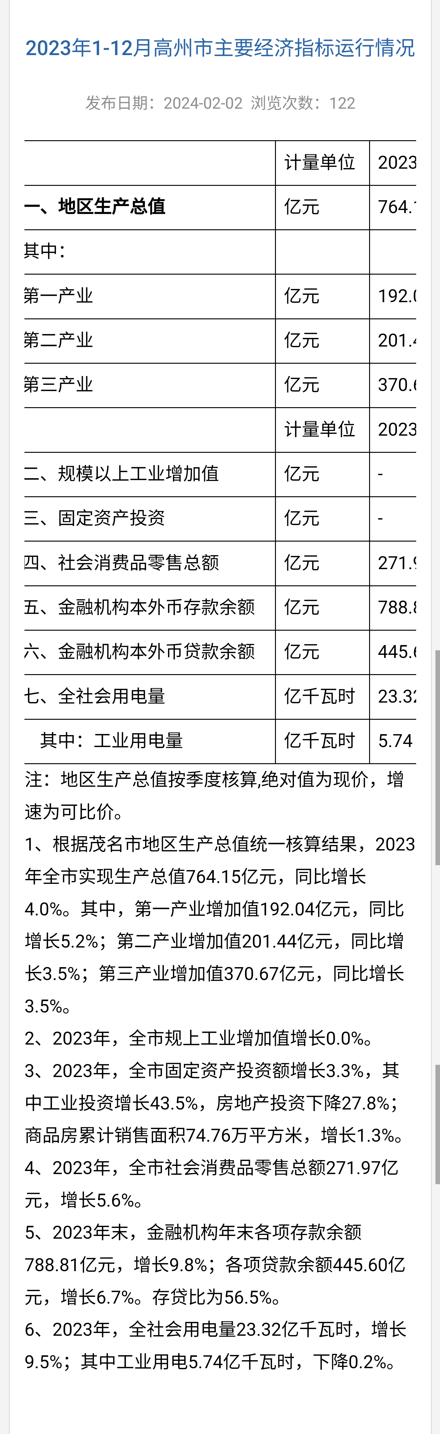 财税。2023年,全市地方一般公共预算收入38.4亿元,同比增长8.1%,排名江门市第一。其中税收收入18.47亿元,同比增长4.6%。