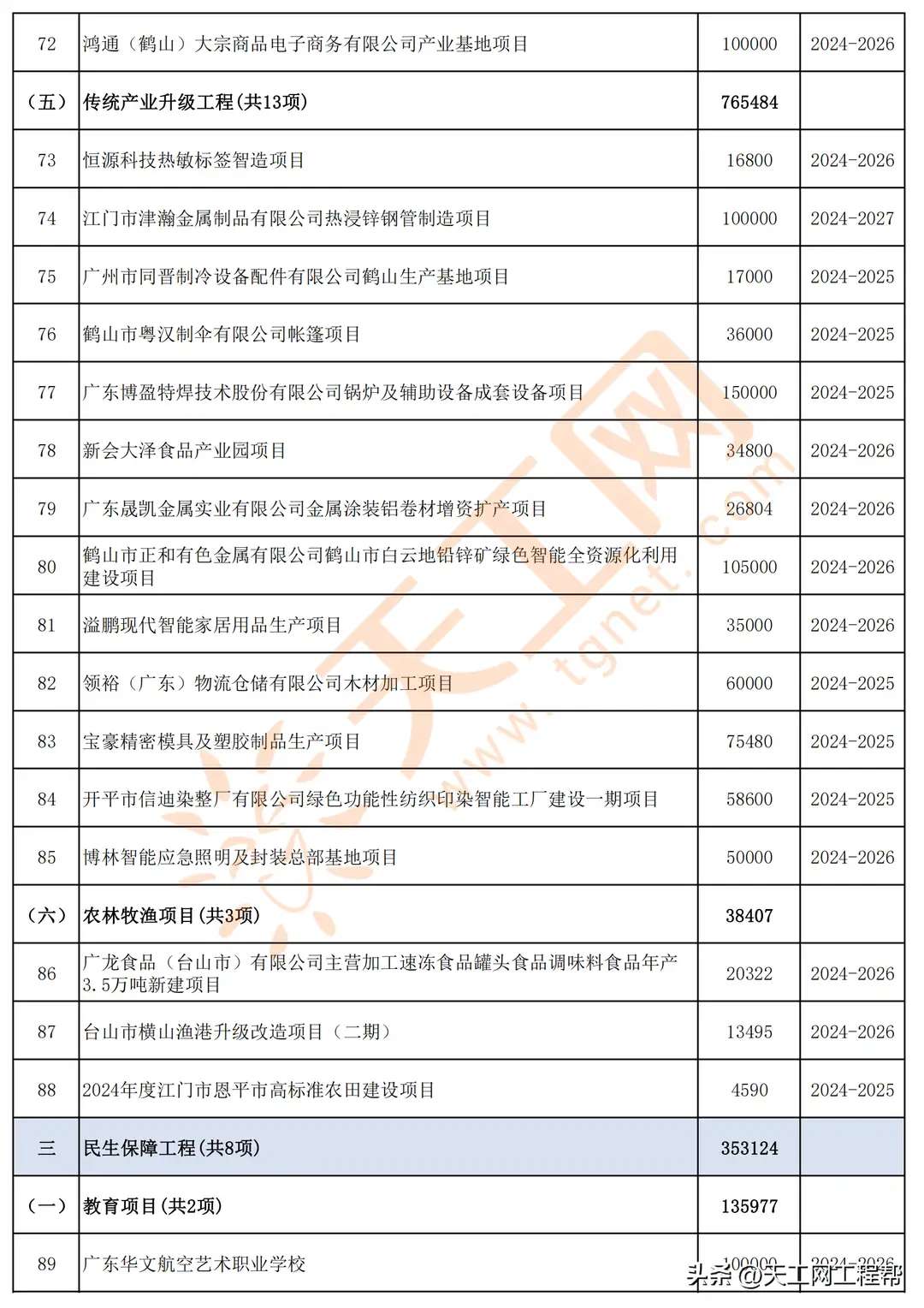 广东省江门市2024年重点建设项目名单