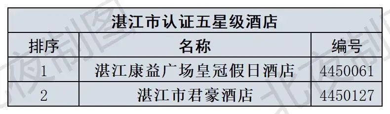 国家旅游局有各省的五星级酒店查询,截止到4月24号为止,茂名就一家可查。 |