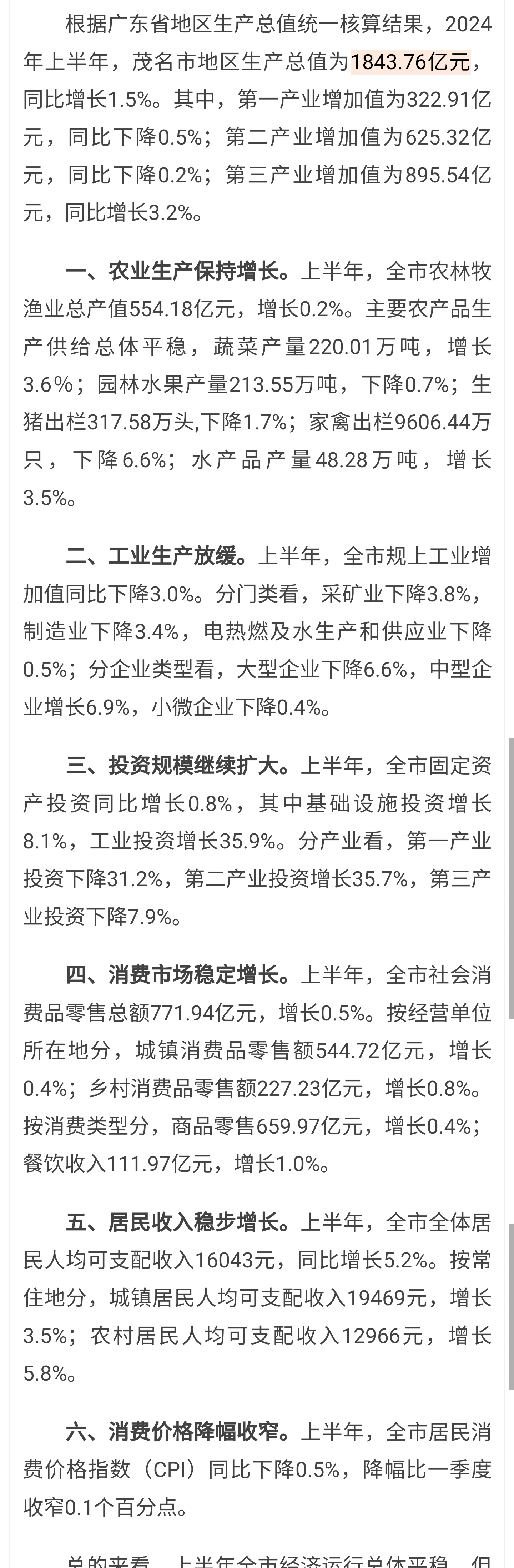 m茂名 发表于 2024-7-30 12:49 上半年~搞荔枝的,居然那么差好少看见第一产业下降的,都不知道这些数据 ...