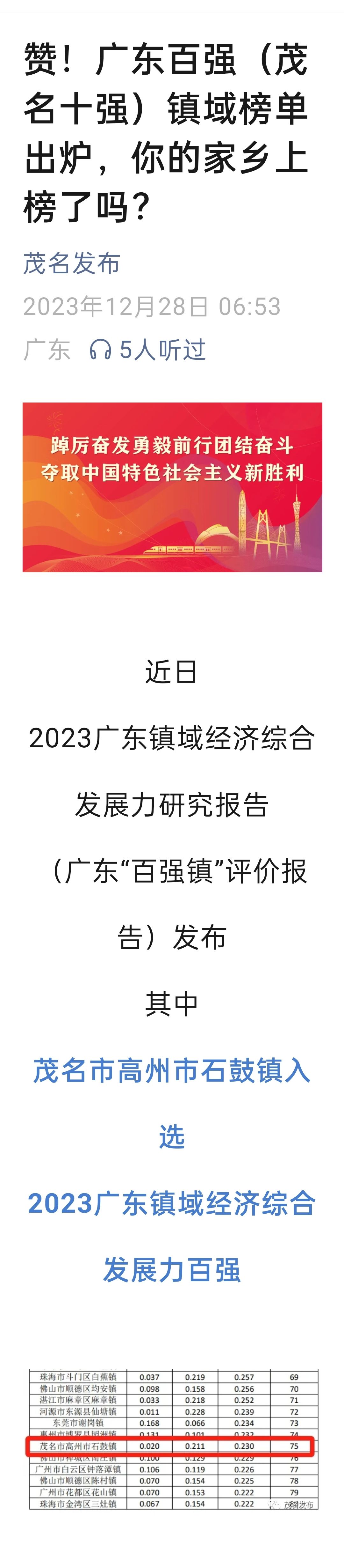 石鼓镇,是高州地区唯一的国家小城镇重点建设镇、全国综合实力千强镇、广东省中心镇、广东省重点工业卫星镇,是粤西地区著名的商贸集散地。作为高州发展的重要腹地,石鼓镇的项目可谓是源源不断。 近日,就有网友以“茂名第一镇——石鼓被宠上天了,十大项目陆续有来”为题,分析了石鼓镇为何成为发展中的幸运儿,并介绍了石鼓镇在建或规划中项目。文章内容丰富,在此分享给大家。 前些年,乡镇都是被遗忘的角落,但野百合也有春天。在国家乡村振兴和广东百千万工程的雨露滋润下,部分乡镇正迎来发展的春天。茂名高州的石鼓镇无疑是其中的宠儿! 为什么幸运儿是石鼓呢?原因无非以下几个: 一是作为茂名经济第一镇,天上掉馅饼肯定是个高的先得! 二是区位具有战略优势,金(山)石(鼓)茂(南汽车产业园)联动发展,成为茂名中央发展轴的一个关键棋子,极大地拉近了茂高双城的距离。 三是产业特色鲜明,石鼓镇成为了华南地区著名的渔网、渔具集散地,有全国闻名的渔网专业市场和渔网专业街。 四是商业繁荣人气旺,小商品年交易额超3亿元,素有“小佛山”“小义乌”之称。 且看看石鼓如何受宠(在建或规划中项目): 1、渔网渔具产业园基础设施建设项目。项目总投资3.4亿,包括新建园区内渔网渔具研发中心和渔网渔具孵化创业基地 ;改造渔网渔具集散地标准化厂房 52 栋,道路改造约 2800 米,园区环境及基础配套设施建设工程等。 2、金石大道。连接金山和石鼓,项目路线全长18km,设计等级为一级公路,速度为80公里/小时。项目按双向六车道标准建设,路基宽度33.5米。估算总投资11.7亿元。 3、鉴江大王湾大桥。项目起点位于石鼓镇车田村附近,桥梁跨越鉴江而设,终点位于镇江镇那射岭附近。预计投资2500万元,桥长总长187m,桥宽12米。 4、润丰产业园。项目由东莞市高州商会投资建设,总投资3.6亿元,预计未来可实现年产值3亿元,为当地提供超过1000个就业岗位,该项目于今年正式动工建设,目前园区完成基础工程,准备进入主体建设,预计年内可以完成并投入使用。 5、高州市顺达农业产业园。项目投资金额达5.25亿元,已经建成了智能化年产10万吨猪肉制品加工中心以及全自动化年产6万吨丝苗米加工中心。该项目已经投产运营,达产后年产值约30亿元,创造税收2.5亿元,提供就业岗位600个,带动农户7000户。 6、石鼓煤矿产业园整治工程。项目总投资5.9亿。一期工程内容主要为水环境综合治理,二期工程内容主要为产业园建设工程,建筑面积约 9.38 万平方米,主要建设标准厂房等。 7、渔网综合体项目。项目位于石鼓镇南华路,用地面积5079.6平方米。石鼓食品公司“三旧”改造项目,二层商业综合体。 8、渔光互补光伏电站项目。中建八局承建的200MW渔光互补光伏电站项目,建设用地面积约3100亩,项目利用养殖鱼塘及坑塘水面进行光伏项目建设。 9、绿野仙踪三期项目。项目总投资2亿元,项目规划总用地面积3.2万平方米,总建筑面积3.2万平方米。主要建设冼夫人点兵主题情景剧演艺区、冼夫人时期建筑群、冼夫人演兵综合区、大马戏表演区、高州非遗文化表演区、高州民俗文化表演区、水秀表演区等。