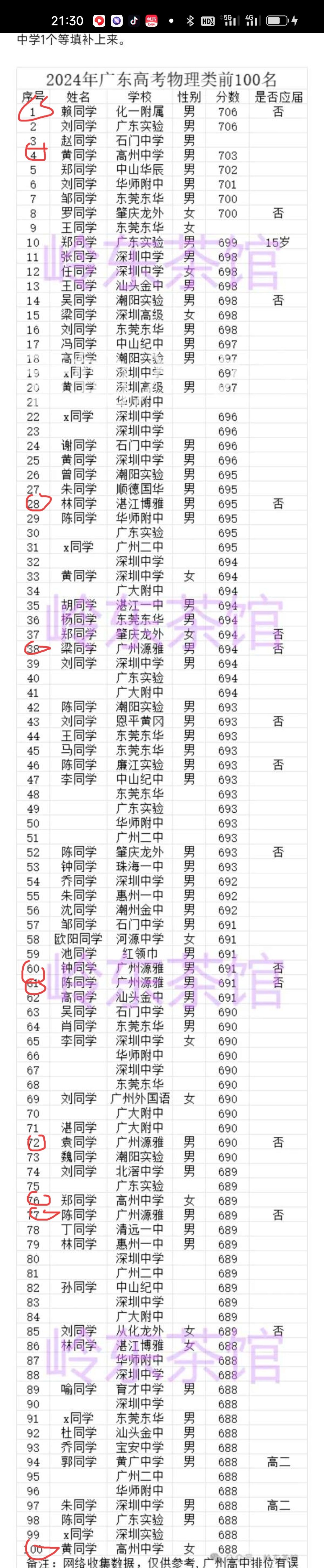 微笑的小东江 发表于 2024-8-19 21:22 物理类前100名,茂名籍实际上有9个!