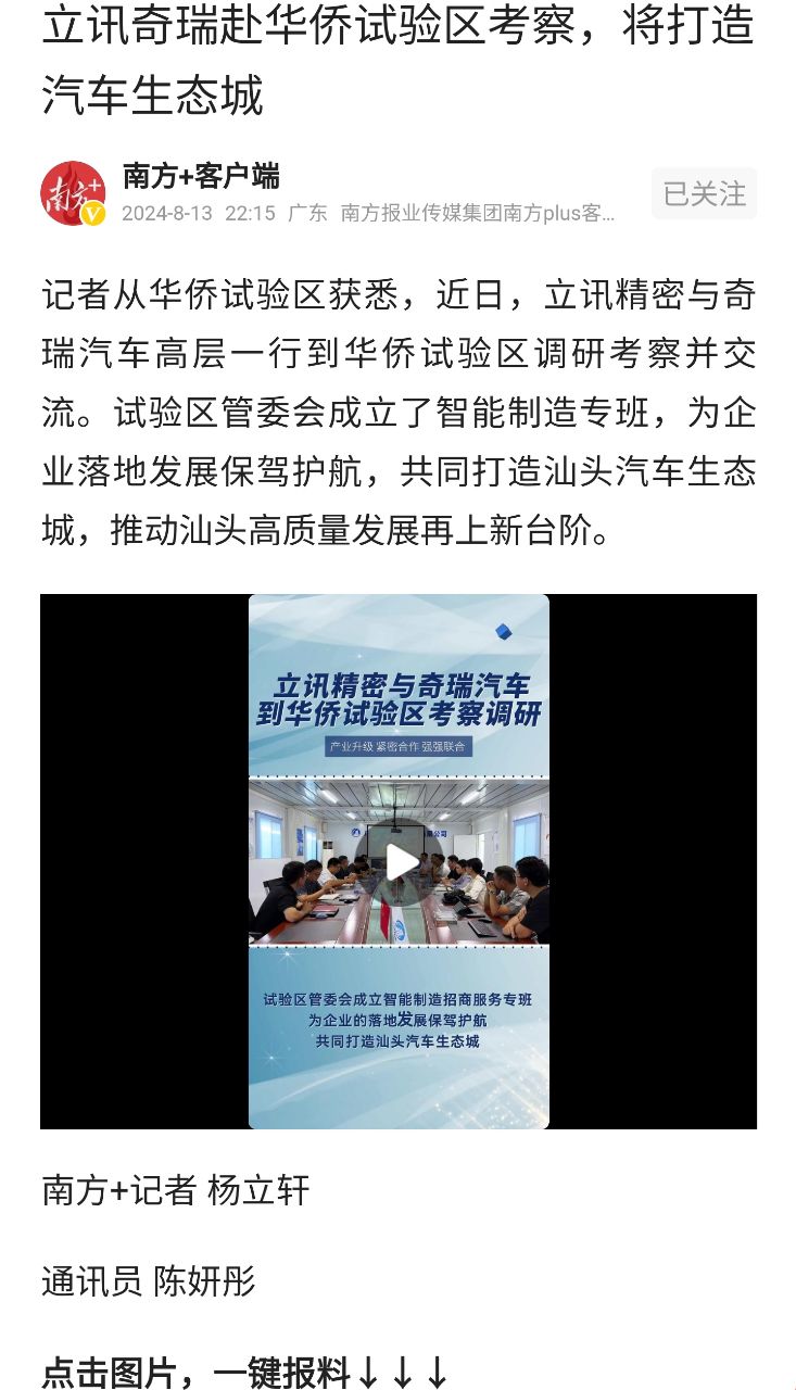 你自己说的是大股东,来广东就一定去汕头,立讯什么时候是大股东了?根本没有决策权。茂名只是去奇瑞拜访一下,不知道你在急什么?还立刻把汕头搬出来笑死。