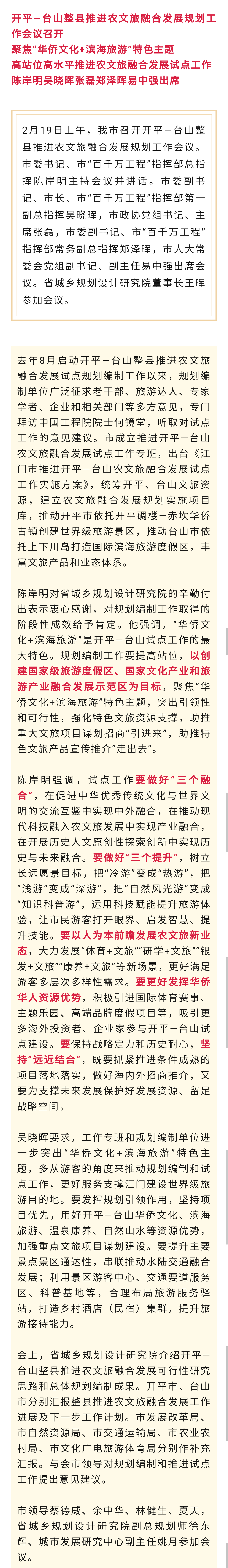 江门去年在台山、开平、鹤山、新会搞了一个八镇联合发展工业之后,今年又搞台山和开平联合发展旅游业
