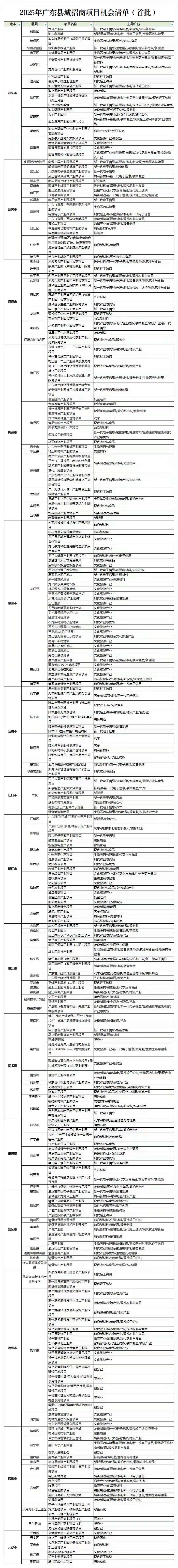 附:2025年广东县域招商项目机会清单(首批)
