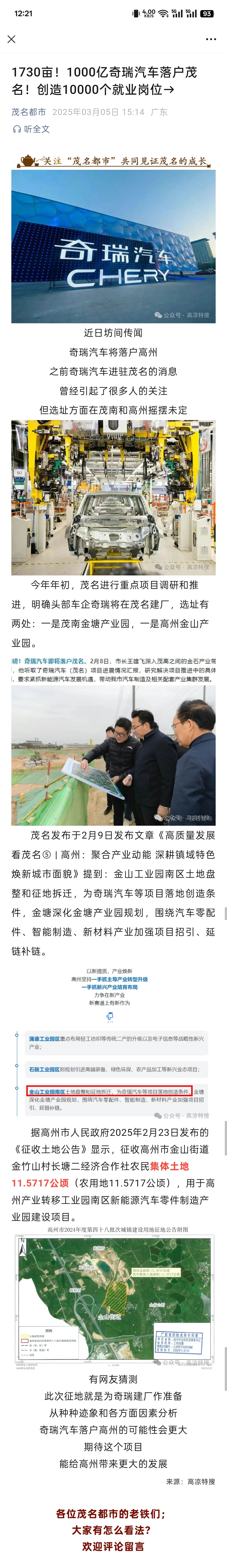 奇瑞项目各大自媒体都吹爆了,投资千亿,1万个就业岗位都说要准备拿地开工了,怎么现在又变成争取合作了呢 ...