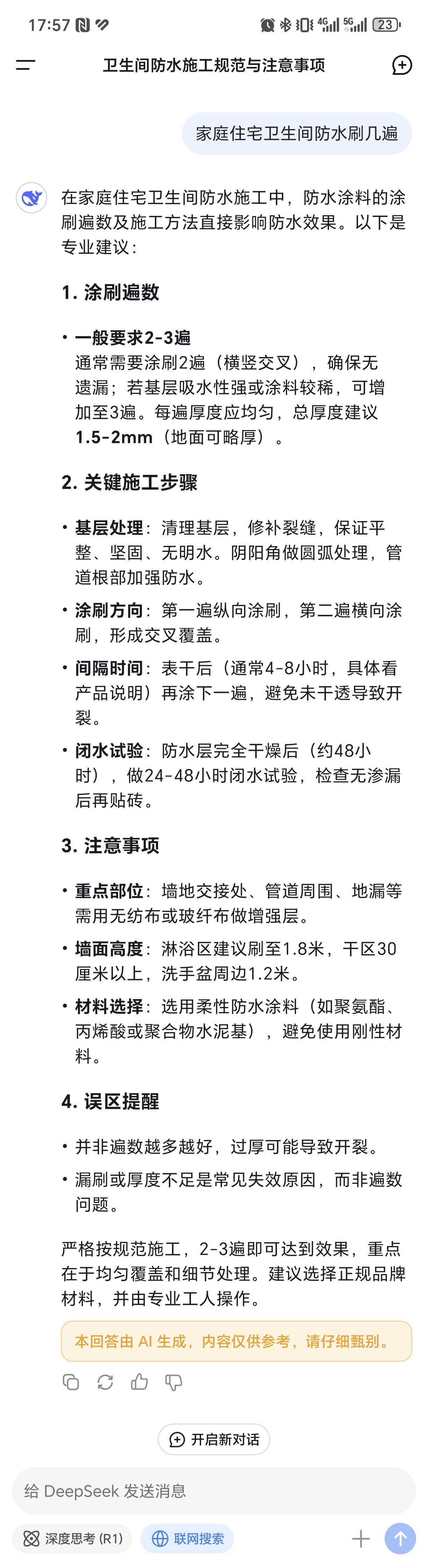 066888888 发表于 2025-4-24 17:20 防水一般最少刷2遍,刷好以后还要做48小时闭水测试