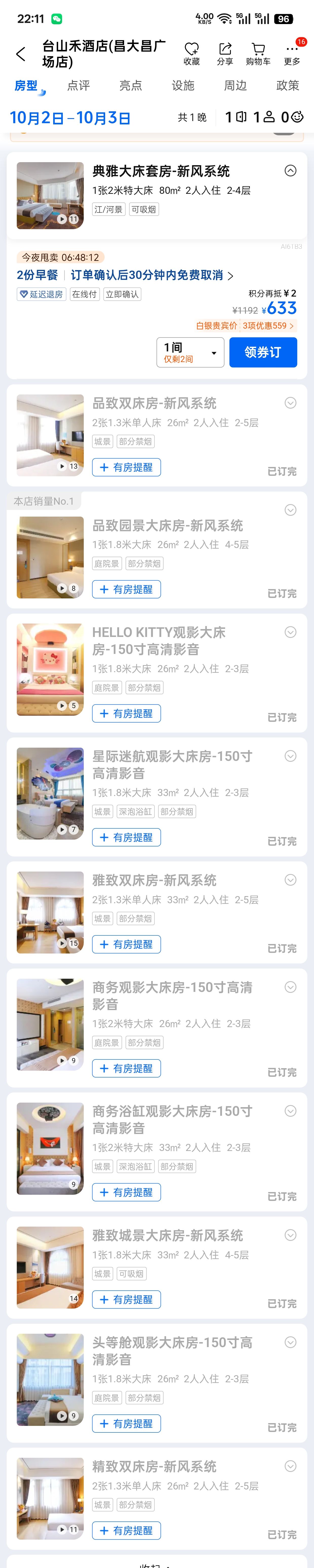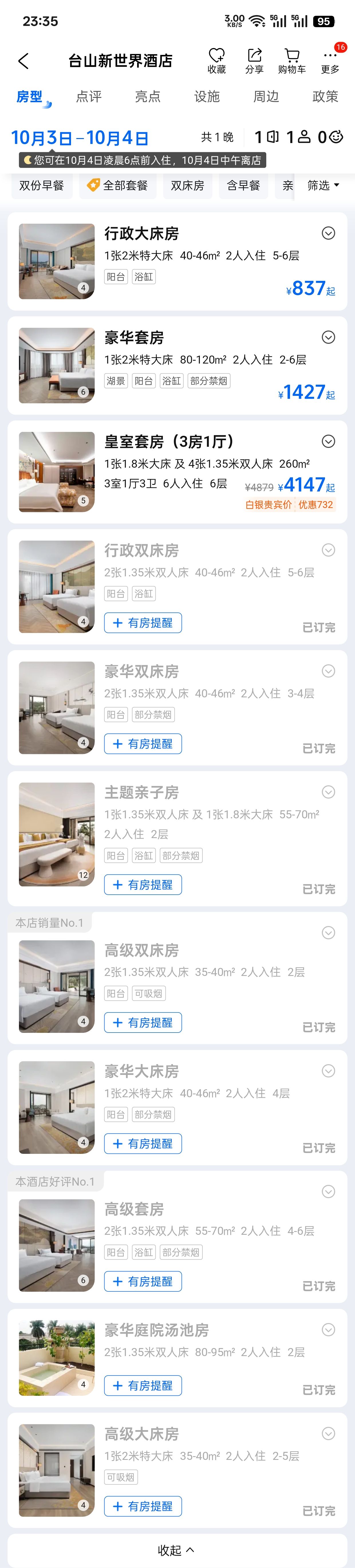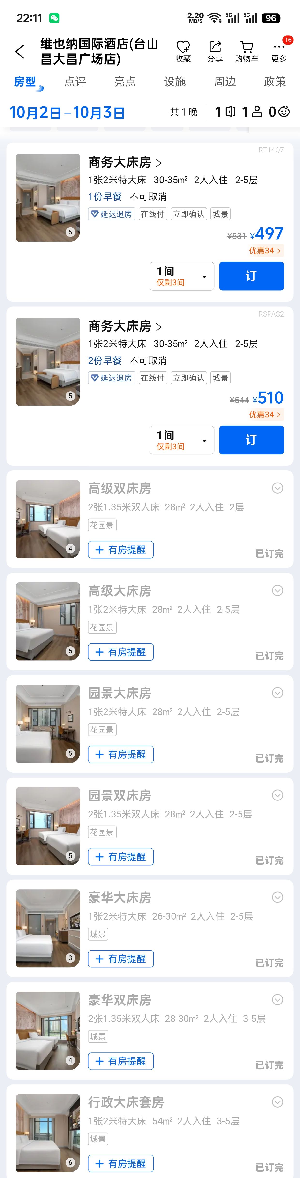 受江门地区蚊子疫情爆发的影响,今年国庆来台山的人流有所下降,,这两天并未出现五一期间一房难求的现象。订满的酒店数量不算多,但查过一些重点酒店大部分的房型都订完了。整体的入住率仍能维持八九成左右。